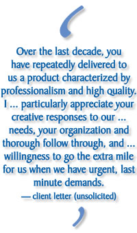 Our agency has been built upon repeat business and referrals from satisfied clients. The marketing communications materials we produce get results, and we get those results while understanding and respecting our clients' budget and schedule requirements.